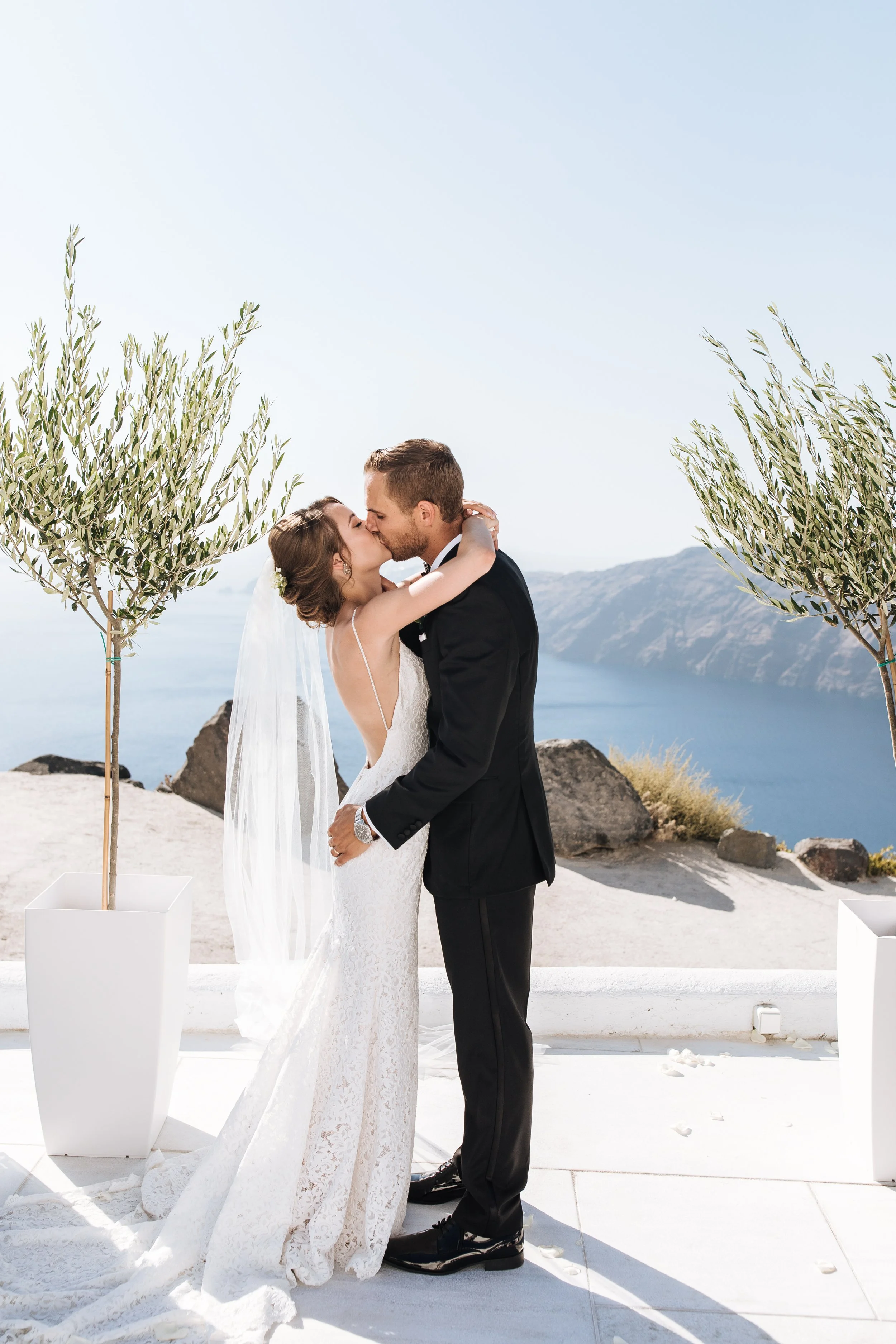 This was the biggest expense for our wedding. We got married at a luxury hotel on the cliff side where the sun sets over the Caldera in Imerovigli. It was an absolute dream. All I wanted for my destination wedding was to reenact that vibe from Mama Mia, where Sophie is on the donkey riding up the hill to her wedding while Meryl Streep is singing the Pierce Brosnan as her scarf is blowing. That's what I wanted. So when I found the venue on the side of the cliff, it was done.